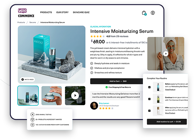 Our experts will create a custom WooCommerce website exclusively for you. You can finalize the design you like the most and own the login details and the content.